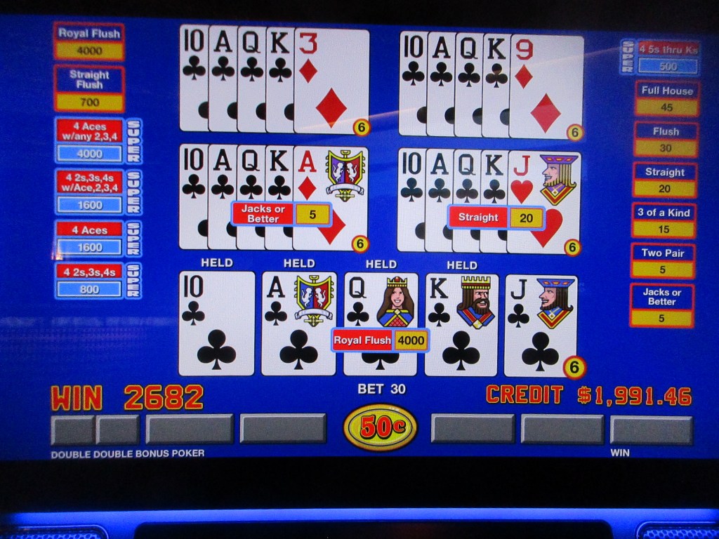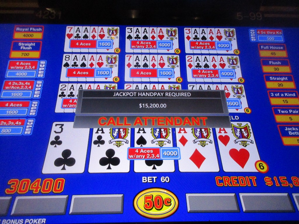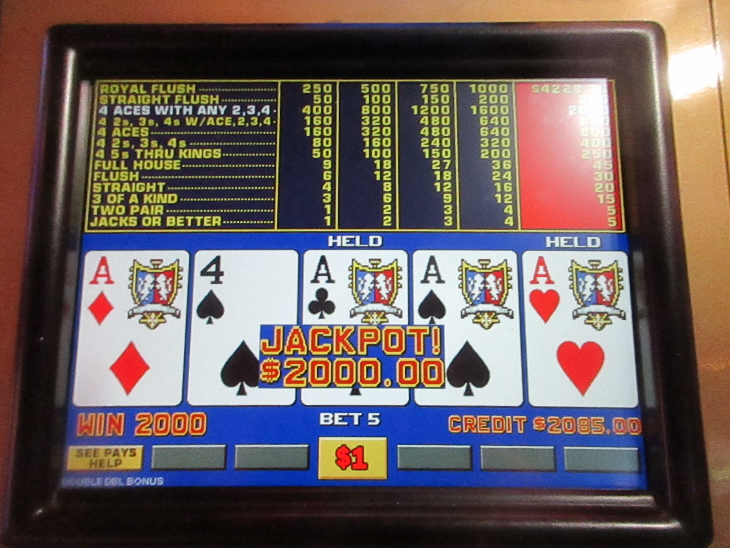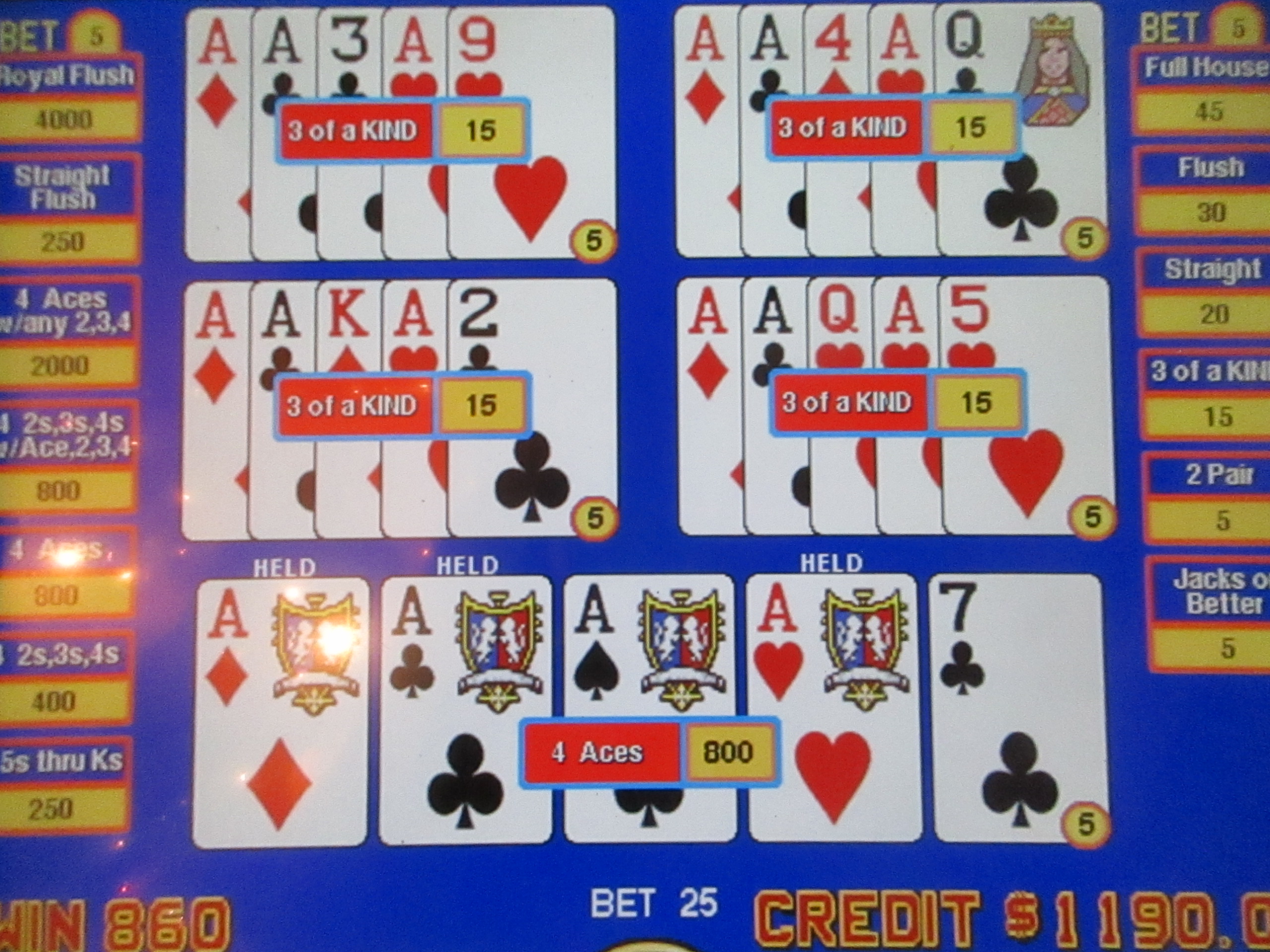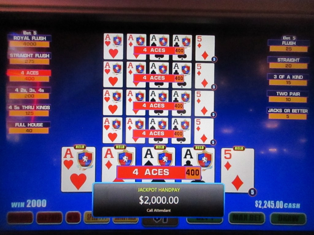 Bet $15 DEALT AAAA2 for $2000 x 5 = $10,000