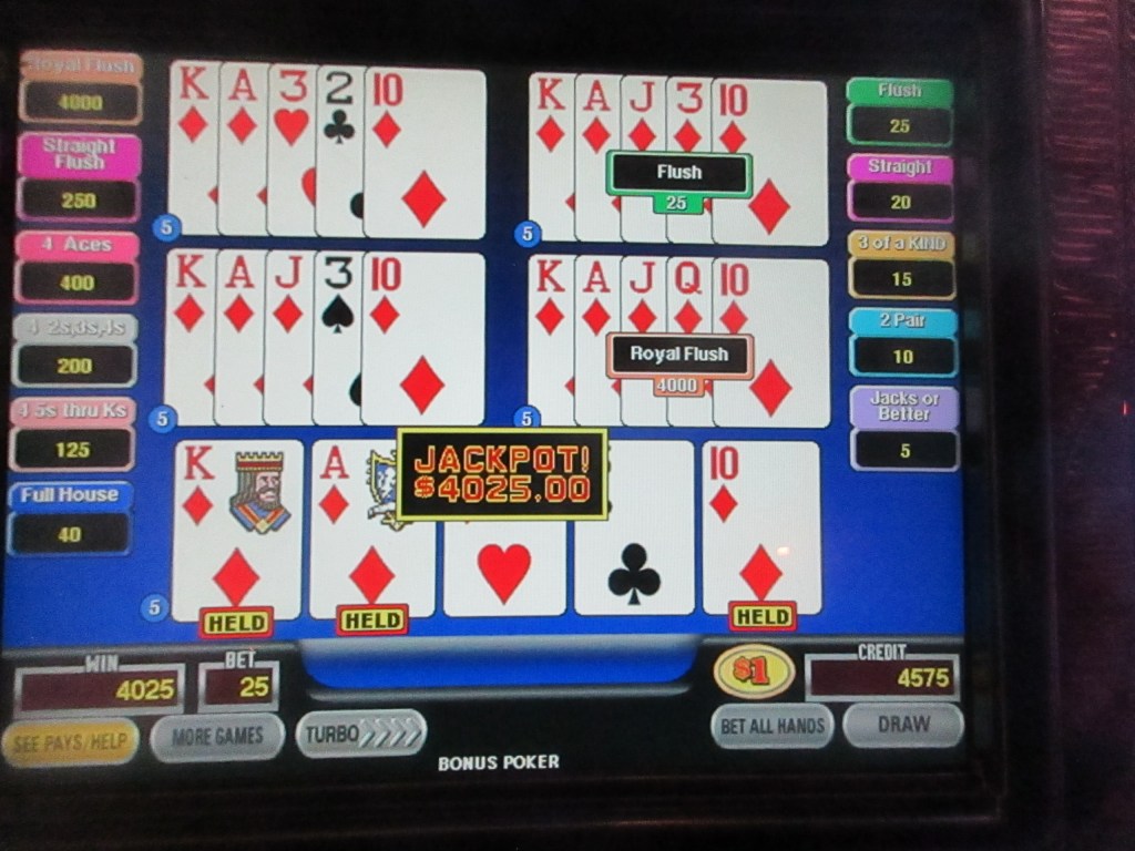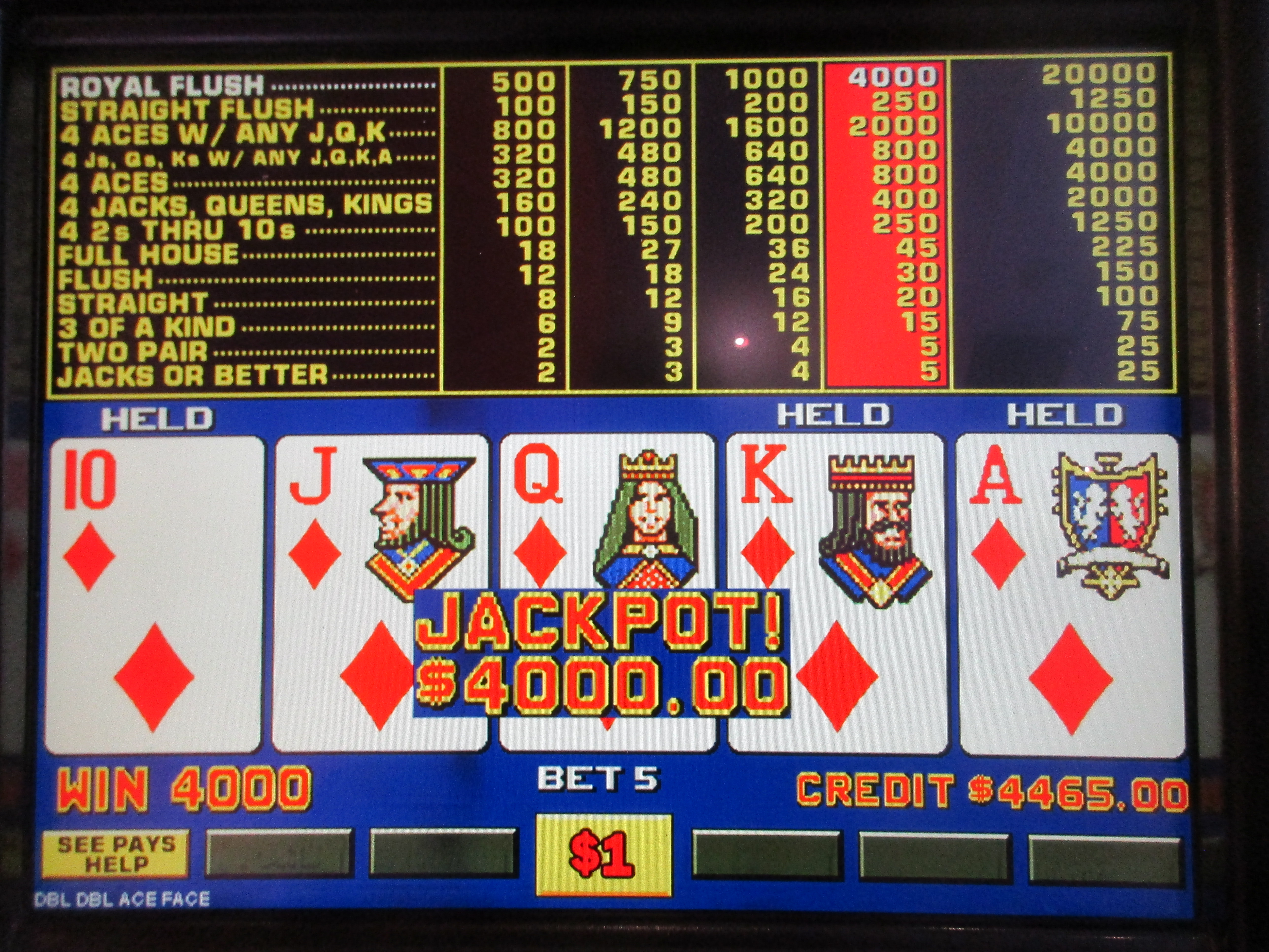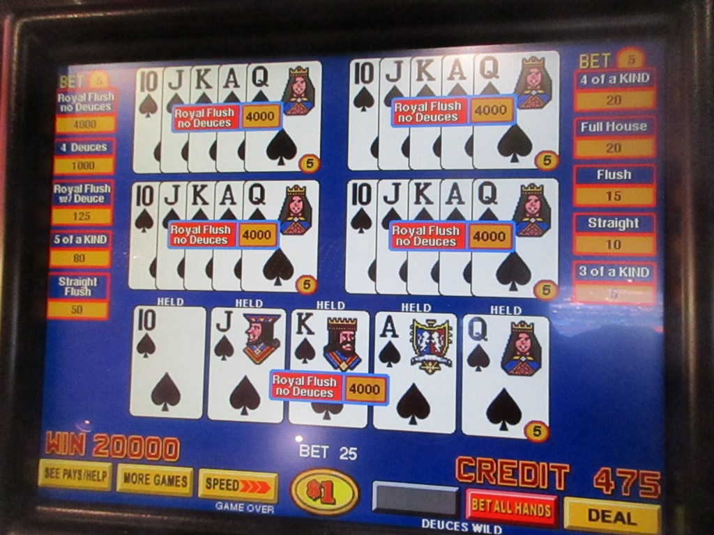 $25 Bet DEALT Royal Flush $4000 X 5 = $20,000