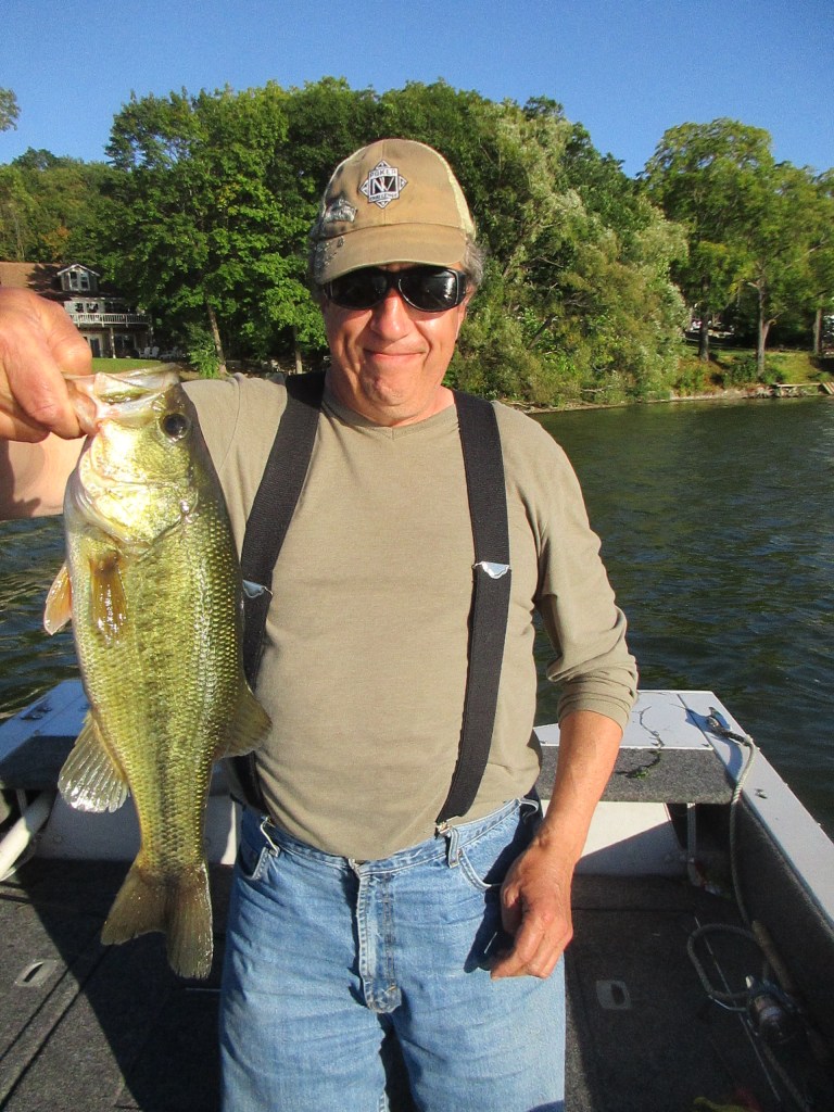 We fished every day Saturday thru Thursday and caught dozens of fish every day between the two boats. I caught some lunker largemouths, smallmouths bass, and a rare walleye. Mike certainly outfished me during the week, he caught a lot more bass, using a chatterbait lure. Mike is a master at filleting fish, and we had two fishfries thanks to Mike’s batter recipe and his huge deepfryer. Mike also won the two poker tournaments we played one night. Fishing consumed most of my daylight hours. My bigger spinnerbait lures produced some of my biggest catches. Honeoye photo montage:
