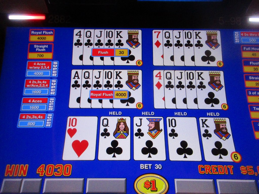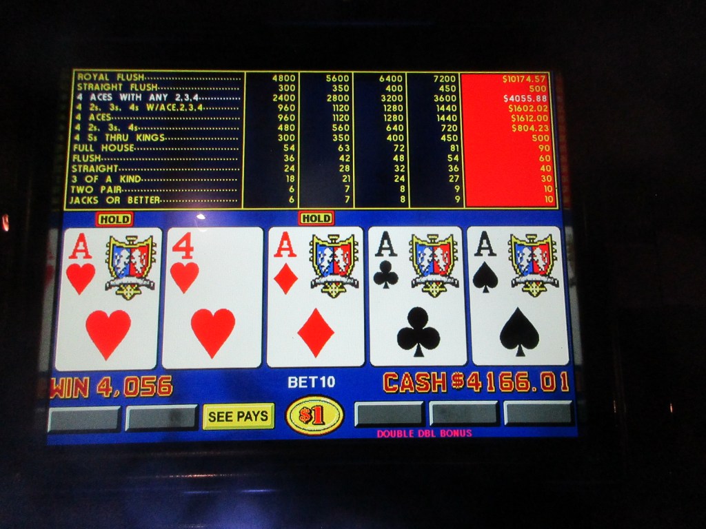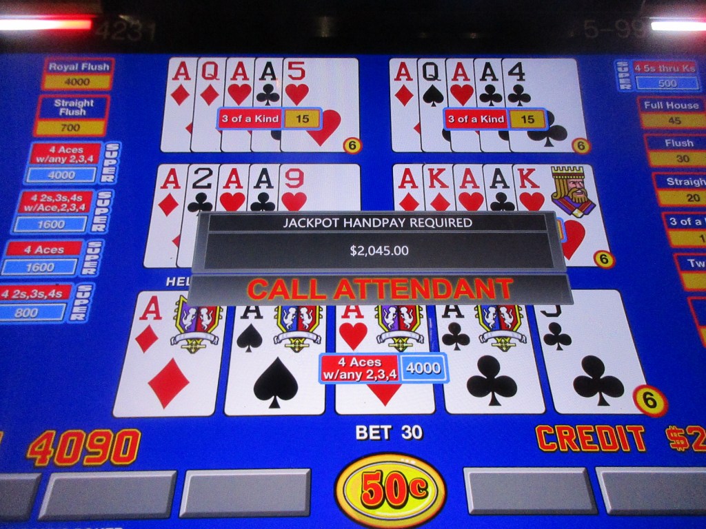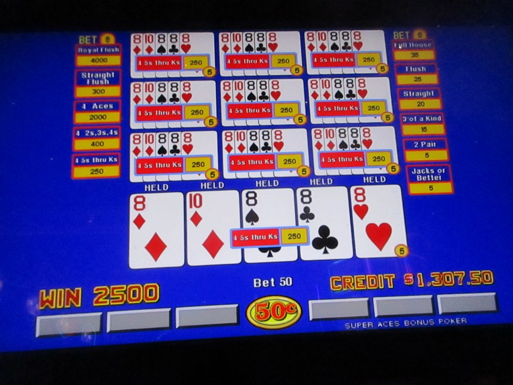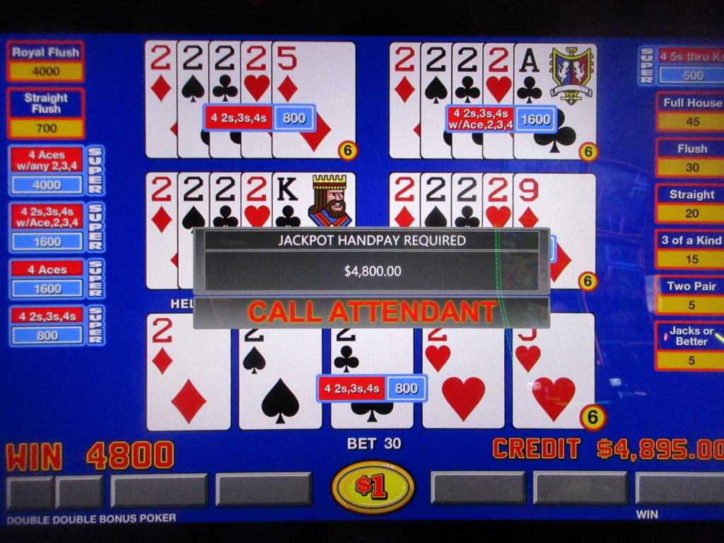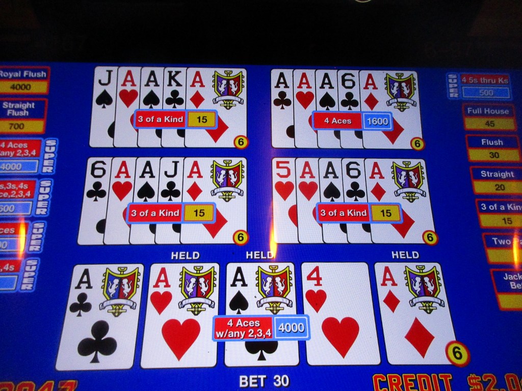 Bet $30 Dealt 4444A for $800 X 10 = $8000