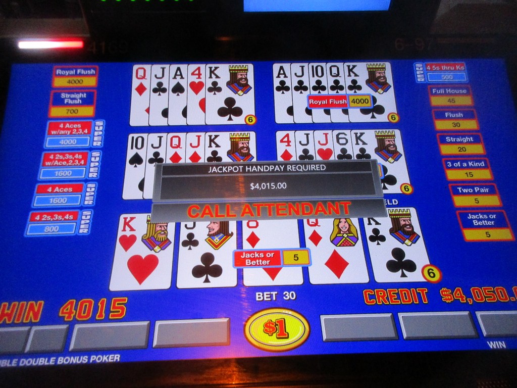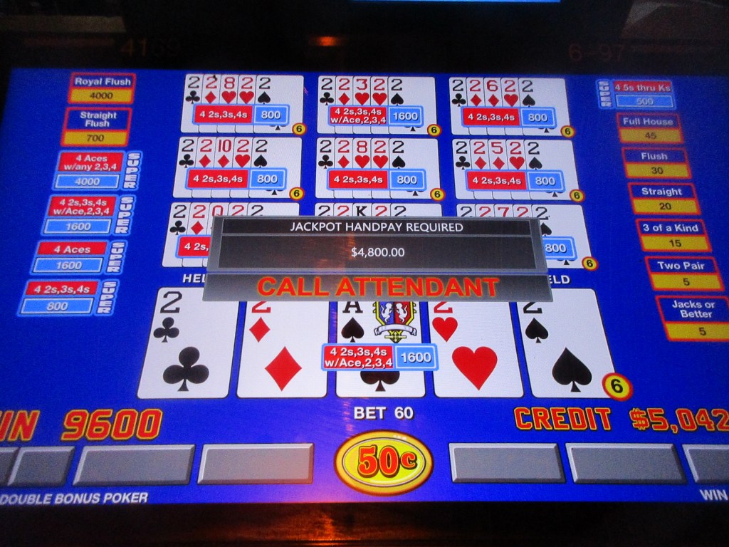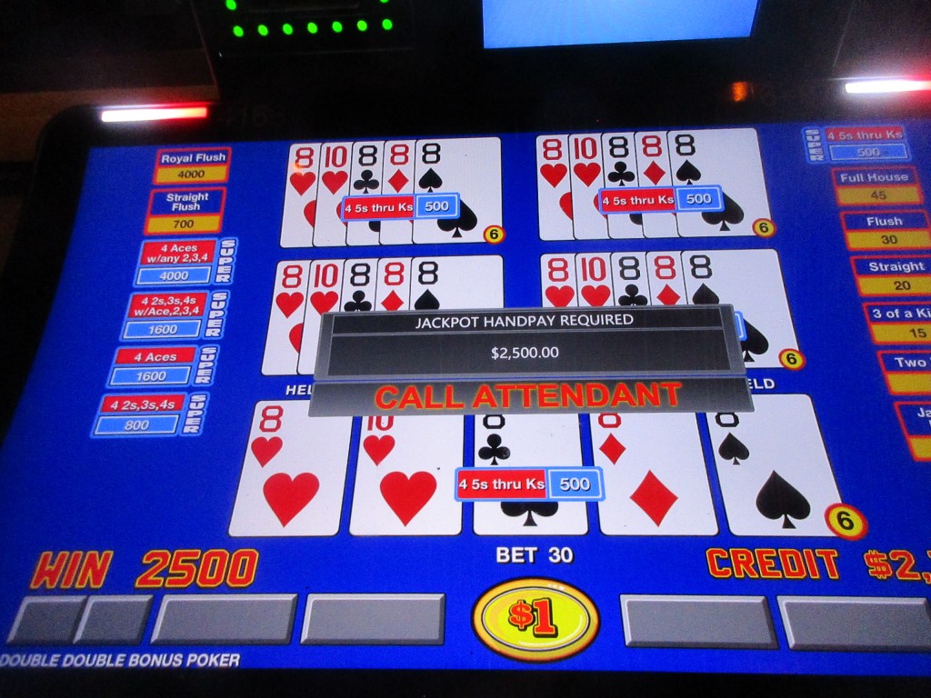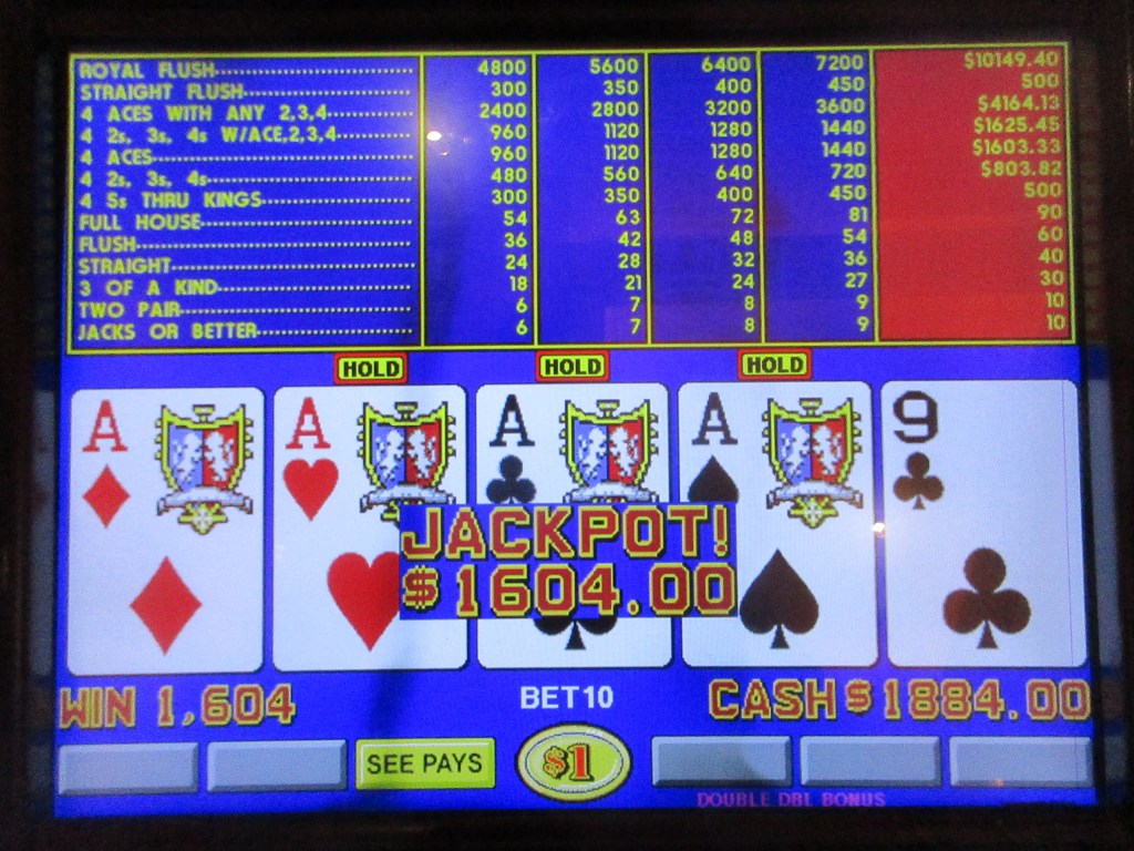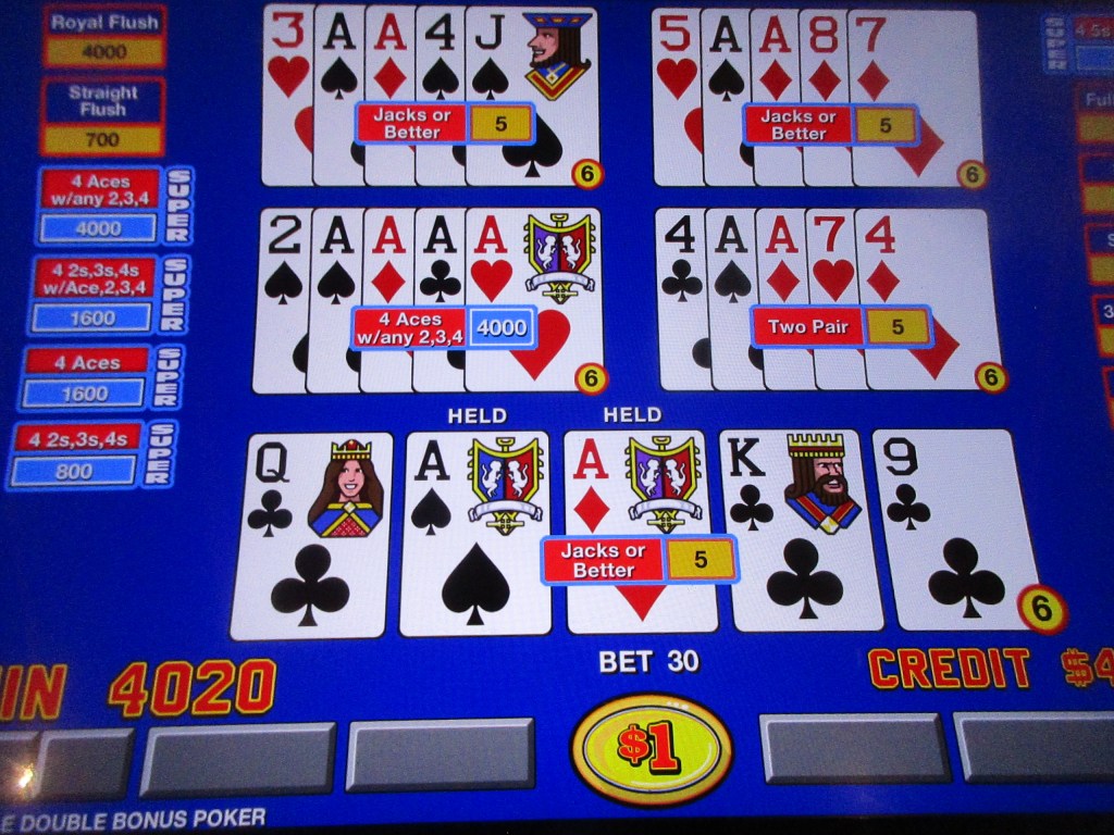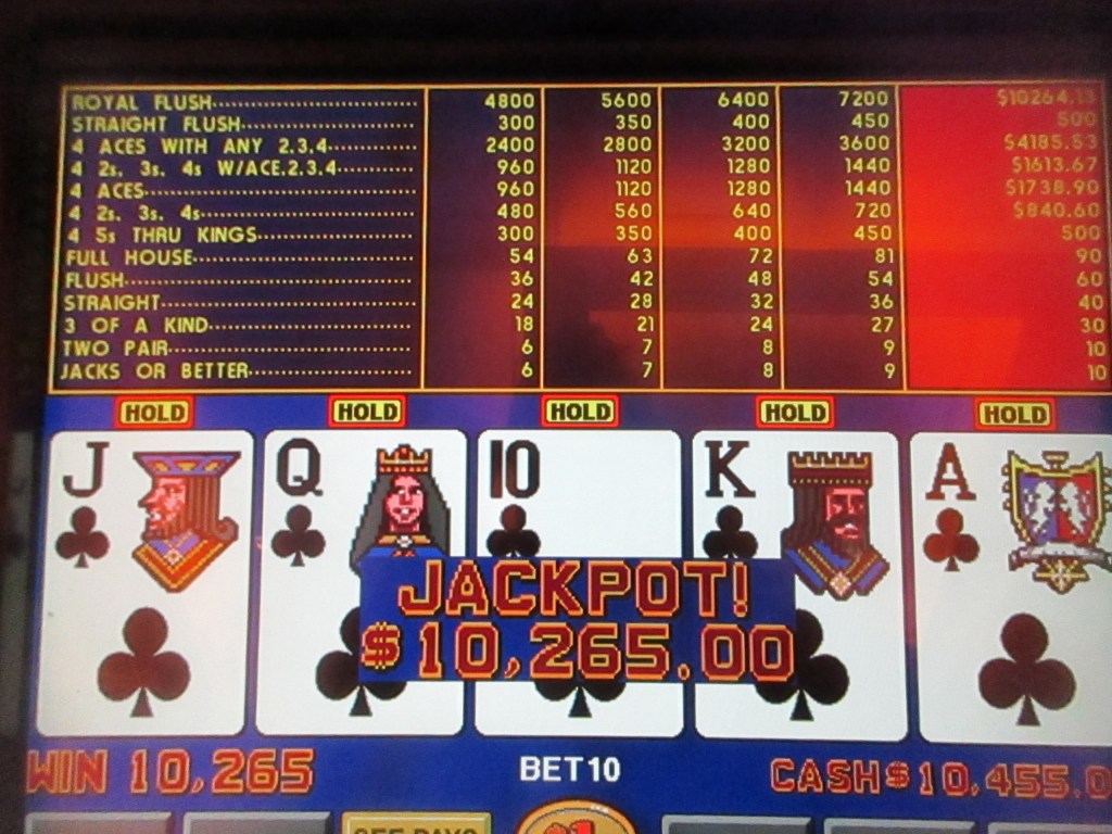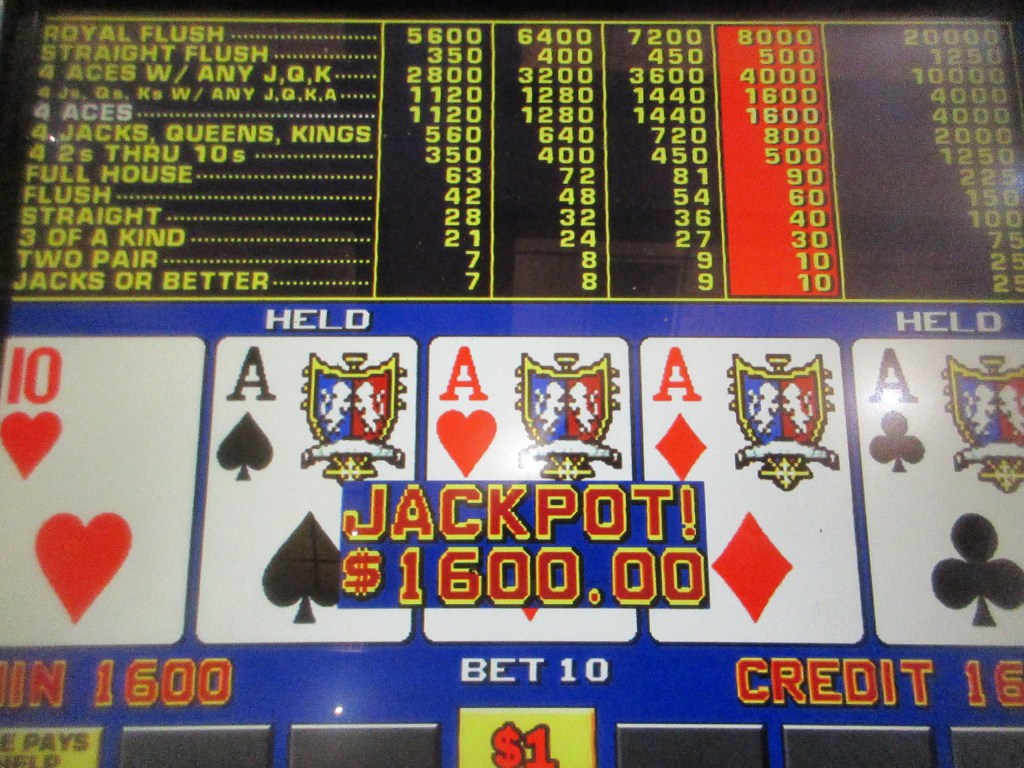 Bet $30 Dealt 4444A for $800 X 10 = $8000