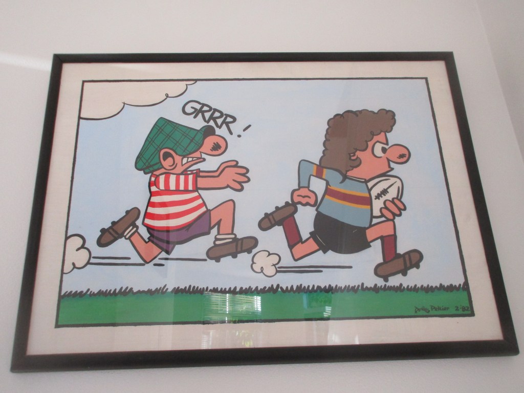 Canvas by ANDY – that’s me being chased. This arrived while I was On Tour playing rugby in NZ and Fiji, March 1982
