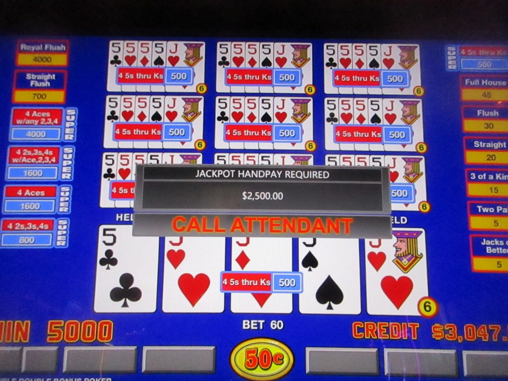 Trip total: Down -$5000; 100 hrs machine play, 48 tax forms, 316 jackpots of $400 or more