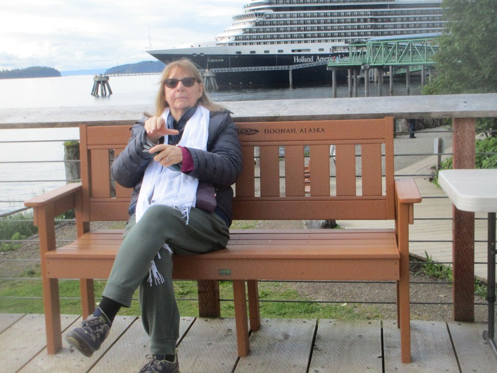 Booked last January using a voucher from Peppermill casino. 7 day cruise from Seattle – June 28 to July 5 – with ports-of-call in Juneau, Icy Strait Point village of Hoonah, Sitka, Ketchikan, Victoria BC and back to Seattle pier 91. Claudia & I, first cruise ever for both of us, in a “Verandah” Balcony Stateroom on deck 5. The Eurodam holds 2100 cruisers and a staff of 850. This ship is HUGE, but the half dozen other cruise ships that docked near us during the week were larger(!), some held 4200 cruisers.